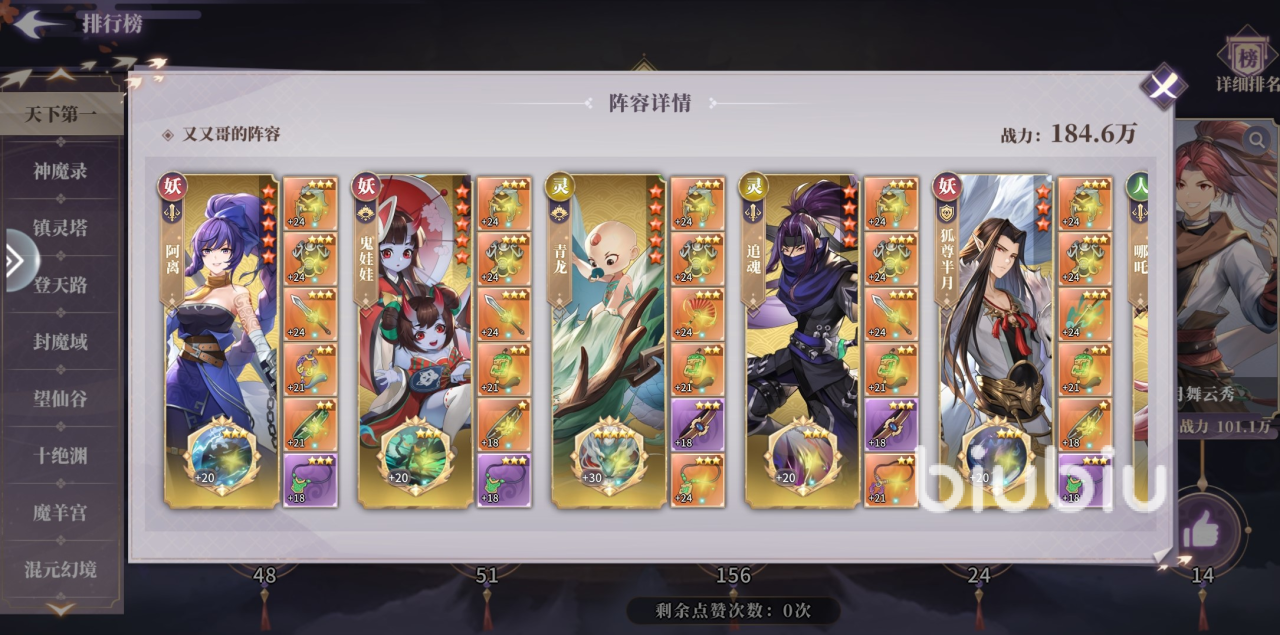 2、单体爆发的追魂,单体残血收割的阿离,团队加爆伤,单体控制的姐己,让敌人体会到什么叫瞬间消失!全体攻击的石矶娘,帮助队伍补充伤害,限制行动的青龙,有效控制场面。