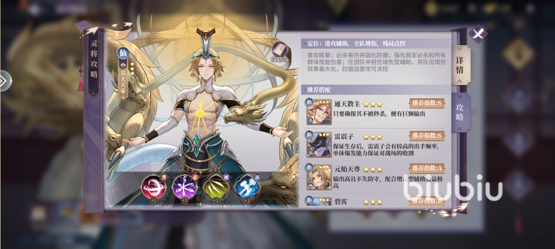 2、整个阵容的核心点就在于“增益”效果,比如无视防御的攻击、易伤、斩杀、免疫攻击等等。在这些收益结合在一起的时候,阵容强度就会瞬间提速几个档次。后期阵容强大是事实,但整体阵型的养成难度是要高于其他种族的。想要在游戏前期体验仙族阵容的实力,那么就需要氪金才行。