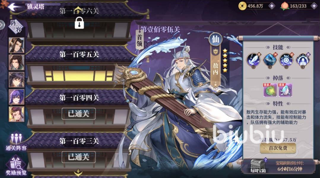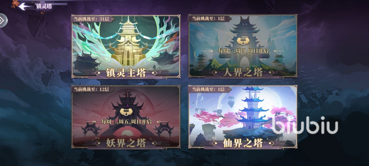 2、镇陵塔:这是一个爬塔的副本,每5层会提升一大段难度,每10层可以获取额外奖励,每周刷新额外奖励。如果可以的话,大家要尽可能去打,这是天赋材料仅有的获取途径。