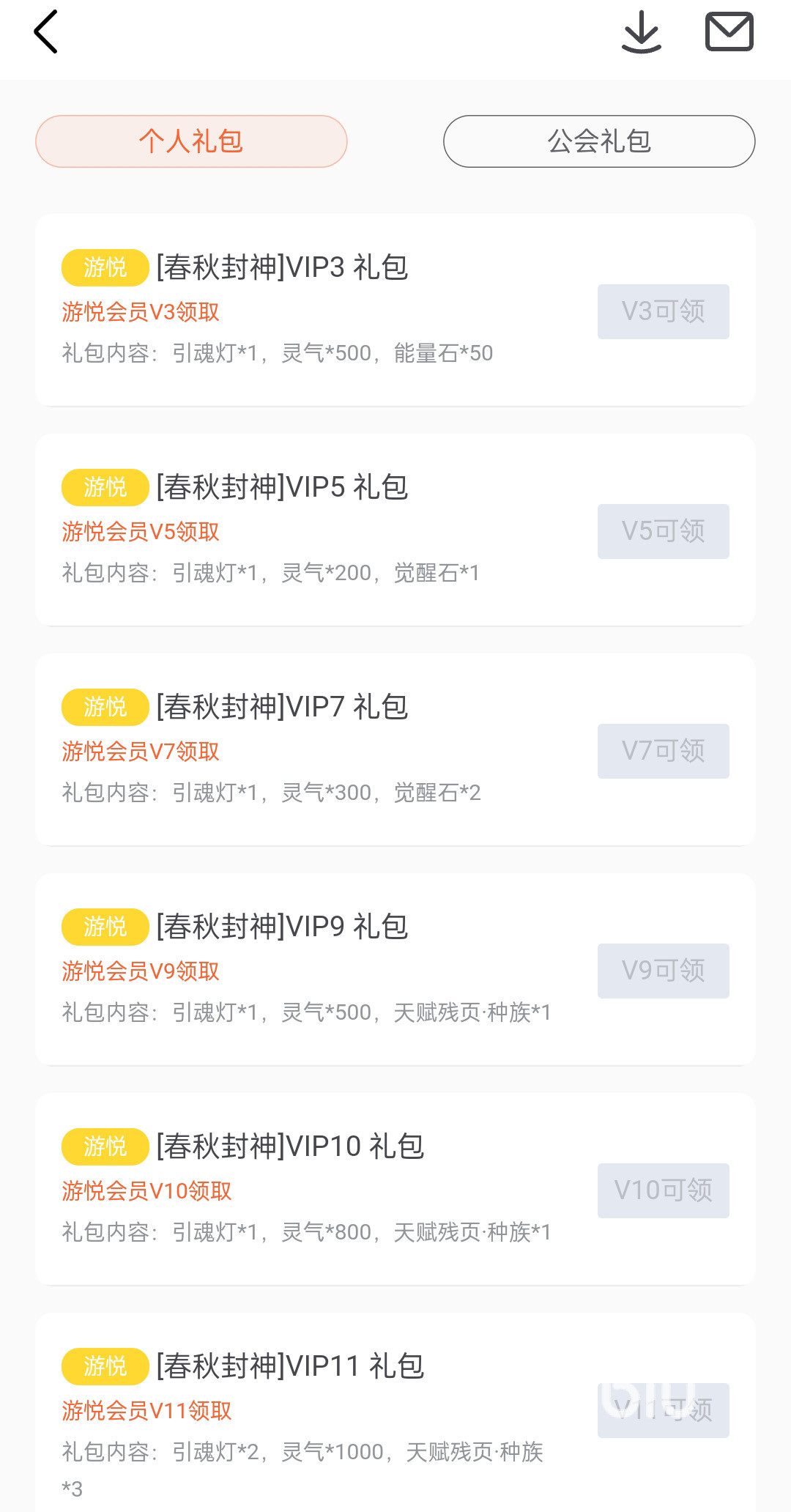 除了上述个人礼包还有需要开启会员才能享受的vip礼包,积分达到不同阶段可以解锁的礼包也会越来越丰厚。目前给到的奖励大多是抽卡券、经验丹、装备强化石等等,当然最实际的还是元宝。毕竟是游戏内的硬通货,有了元宝可以购买各种各样的材料道具。