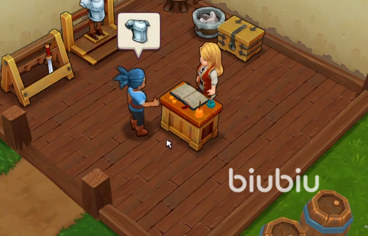 每一个武器都需要一定的材料才可以进行制作的。咱们需要将这些材料都收集完成便可以进行制作,制作是有着时间的,在时间到了之后便可以宣布完成了。然后咱们便可以将制作好的物品给放到出售架上了。在清理完所有的灰尘后,附近的矿工也会来拜访我们,在拜访后他会给我们一个护胸甲的图纸。因为咱们目前没有防具架,所以需要将其给制作出来,第一个防具架子是免费的,咱们可以直接将其放在屋子里合适的位置。