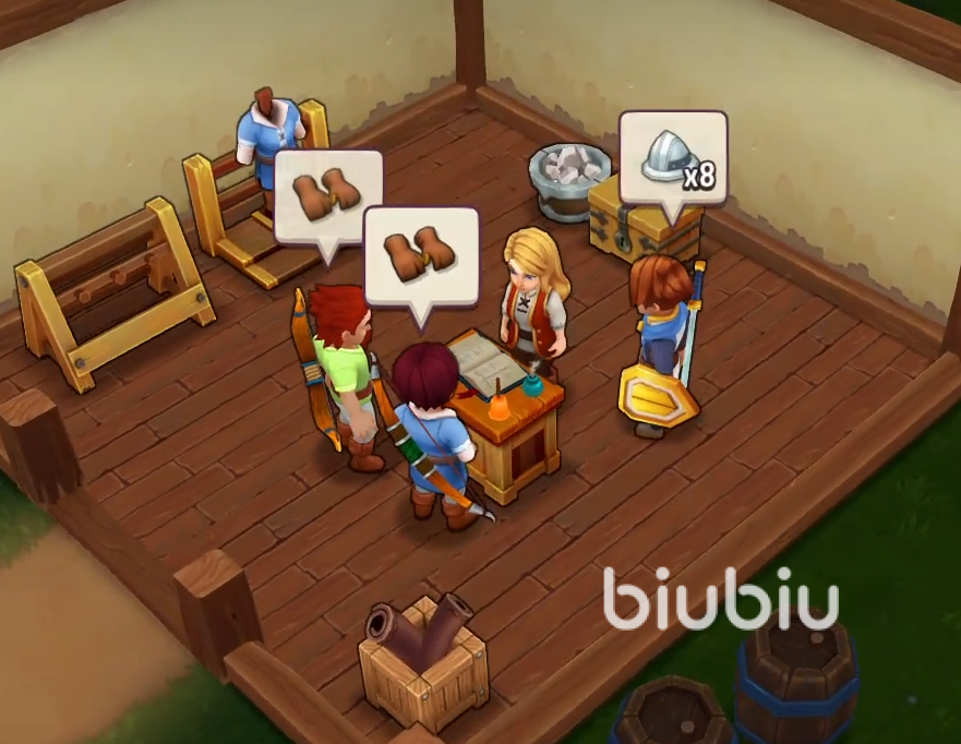 接下来咱们的客人在上门的时候会提出要求。我们需要根据客人的要求来打造物品才行。在出售物品的同时咱们尽量也将主线任务给完成,因为前期主线任务可以快速的帮助我们熟悉游戏,同时还可以给我们提供新的图纸。这对我们的提升是非常大的。所以主线任务需要尽快完成。一开始咱们的矿石获取速度要高于皮革,所以尽量在货架上多放置一些矿石所制作的装备,比如短剑,铠甲之类的。我们需要多收获一些客人来提升自己的等级。