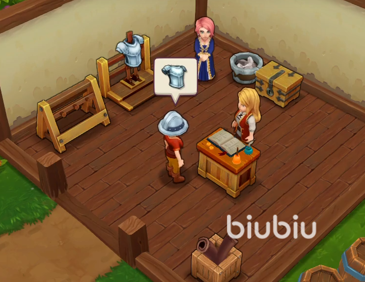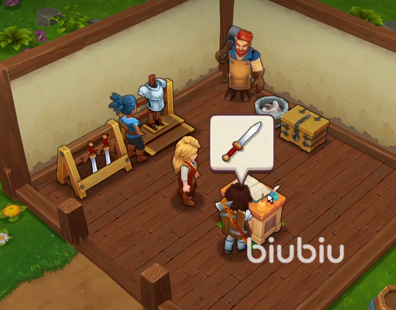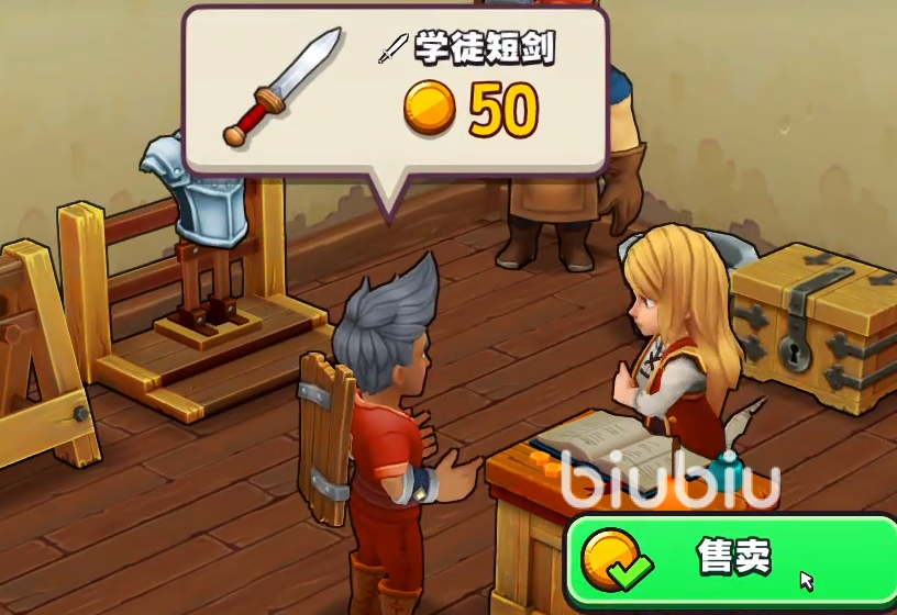 在制作完毕短剑后,玩家们还需要制作一个铠甲,接着需要把武器和铠甲都放到货架上进行出售。不久之后咱们便会迎来我们的第一个顾客。在交易完成后第一阶段的教学便会结束。接下来我们需要制作短剑或者护胸甲来进行出售。这个阶段我们的任务就是不断的出售装备,让自己的店铺等级尽快得到提升。在升到2级之后玩家们可以雇佣的店员就会增加。咱们的新店员会给我们带来全新的图纸。
