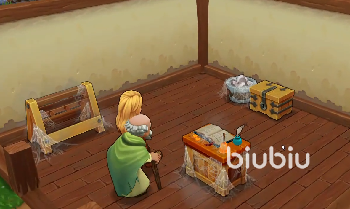 这款游戏以模拟经营为主,我们所扮演的是一家商店的店主,一开始玩家们需要先选择自己的性别,在选择完毕后需要给自己起一个名字,然后便可以正式开启游戏了。咱们一开始的店铺非常的陈旧,玩家们需要先对店铺进行打扫才行。打扫的话点击需要打扫的设备几次即可。在打扫完毕后我们会整理出来一个物品货架。紧接着欧文长老会给我们一张短剑的设计图。前期咱们的游戏主要就是收集材料,制作物品,然后放到货架上惊醒出售来赚取金币。