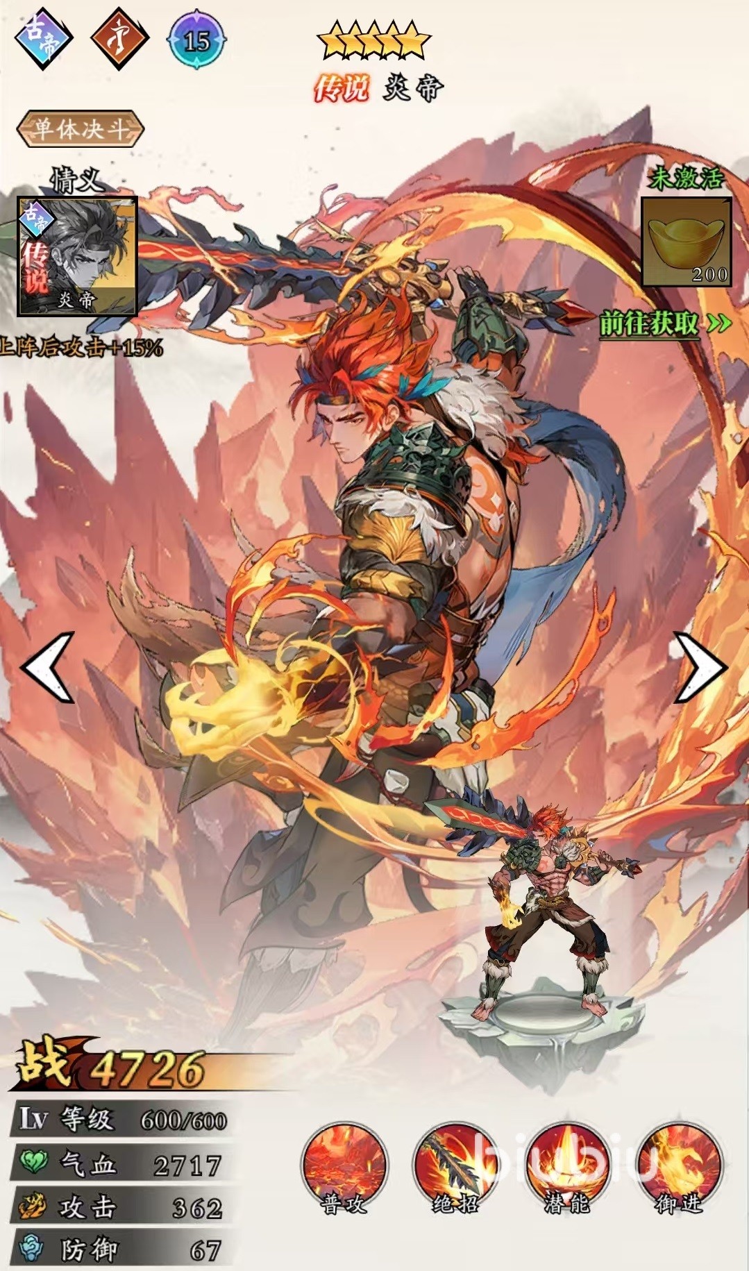在目前古帝阵容中,小编认为排名第一的当属炎帝。炎帝的绝招攻击敌方单体目标造成高额伤害,在使用技能前,炎帝可以根据自身的怒气值,获得额外的可累加效果。当怒气值大于等于5点的时候,暴击伤害提升50%,怒气值大于等于7点,暴击提升50%,怒气值大于9点时,能无视部分防御和伤害减免效果。所以说满怒状态下的炎帝,有着极强的单体输出能力,场上的绝大多数目标都可以一击必杀。