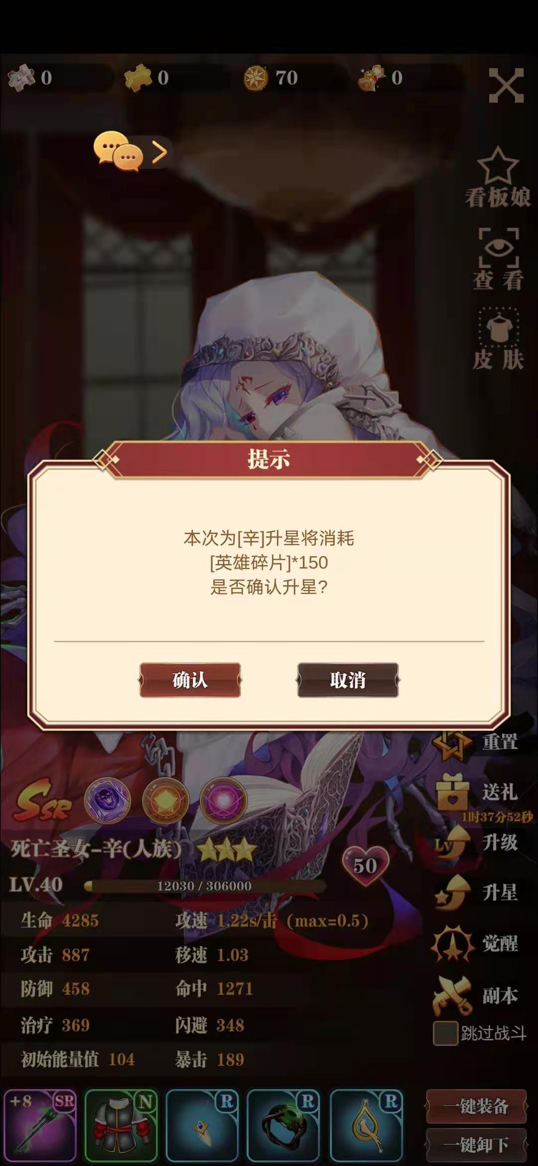 3.英雄初始都是一星,通过使用自己英雄的碎片或者万能碎片进行升星,万能碎片可以在商城买或工坊制作获得。这个SSR级别的英雄碎片极其稀缺,通常都是用万能碎片进行代替,小编在这建议不要给SR或者R阶英雄使用万能碎片。在4星升到5星过程中,要用到星石,同样也是稀缺物品,获取方法少,对这个道具的需求量却很高,玩家使用前要想清楚了。