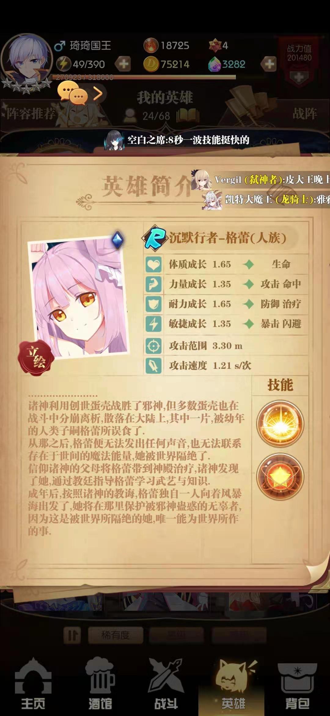 格雷人族的R阶英雄,虽然级别低,但她的本事可不小,技能可以提供大量的减伤,在PVP中的减伤队可是主力队员,作用也是极大的。