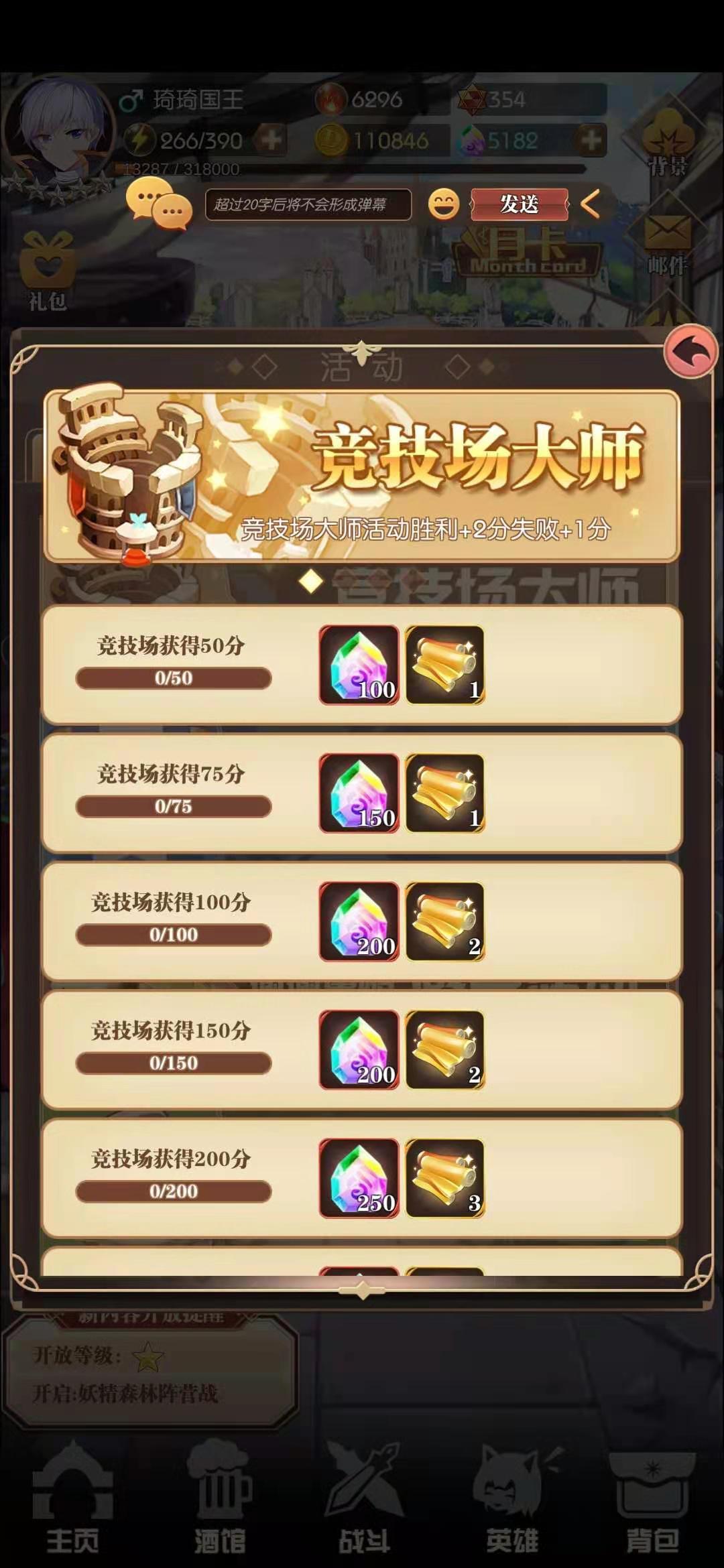 1.竞技场大师:在竞技场获得50、75、100、150、200、300、500分时可以领取奖励水晶和天赐锦缎。