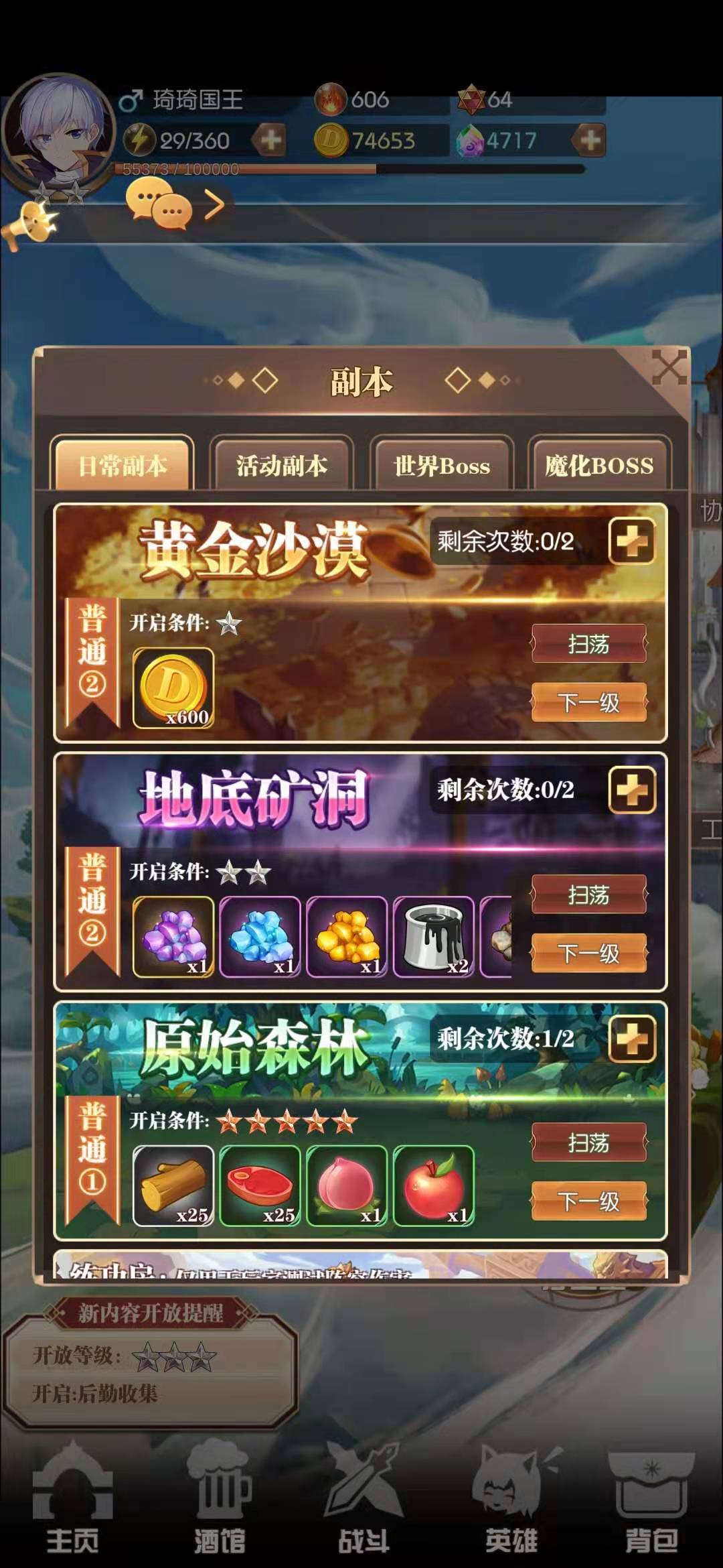 2.在主页的浮空岛内,打开副本界面,挑战世界BOSS也可以获得炼金调和剂,玩家需要先提升自己等级到白银4星可以开启世界BOSS。