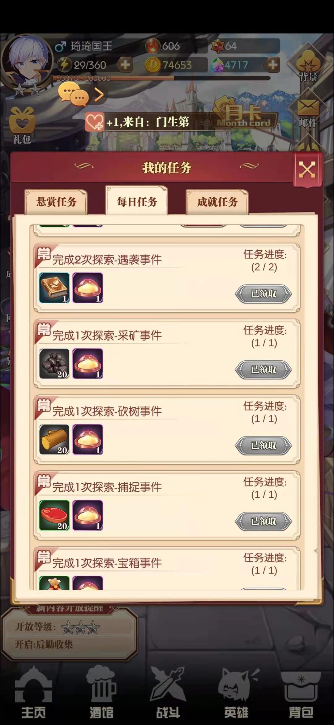 领取一次探索战利品,探索界面右下角战利品点击即可。