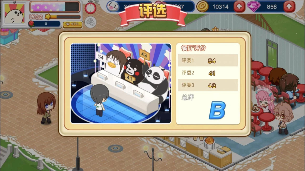 等做好这一切后,我们再来参加评比,可以看到这次餐厅评分在40-50分之间,总评升到了B。比之前30-40分的区间提升了不少。