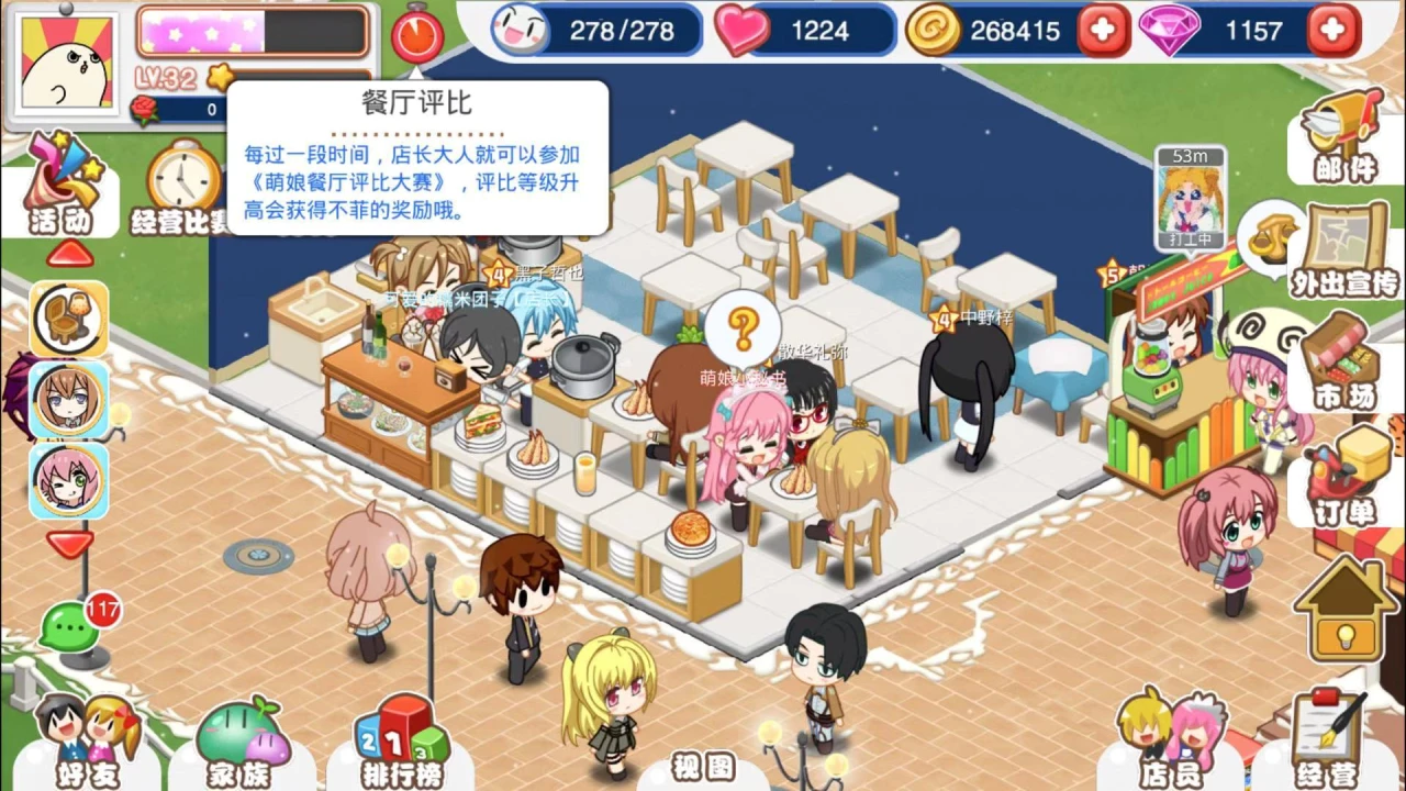 2020年02月24日 23:52游戏里有一个餐厅评分的环节,每过一段时间就会开展评比大赛,其中餐厅评分就是其中一个环节,到底餐厅萌物语怎么提高餐厅评分?下面小编教你教你提高餐厅评分的方法,如果提高等级后会收到奖励哦!