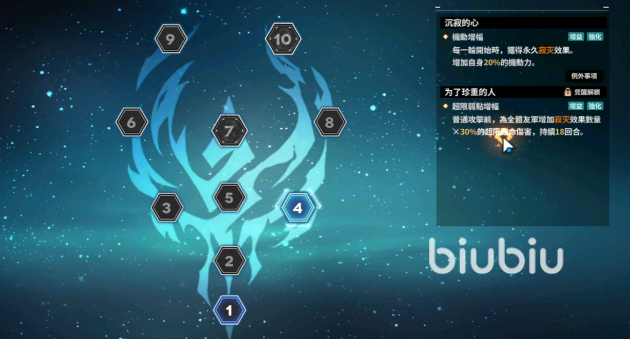 2、星级(突破):这个功能不仅影响着角色的数下,同时还影响这角色的等级上限以及升级的属性加成。当角色达到当前等级最大值后,就可以利用该功能实用资源对角色进行突破,在完成突破后再次突破就能够进行升星了。无论是最低品质还是最高品质的角色,最终都可以达到满星的。
