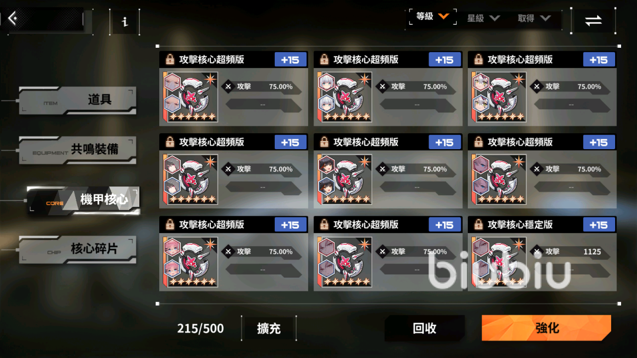 5、核心:这个功能算是该游戏的核心,可以为角色带来大量属性加成,但是也需要玩家投入更多的时间才行,再有就是也有一定的运气成分在里面。