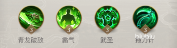技能方面关羽用着霸气、青龙破敌、武圣、拖刀计四个技能,其中青龙破敌和托刀计是主动技能,可以存储三次,攻击伤害很高,可以对敌方单体脆皮造成不俗的打击,武圣和霸气可以提高自生的属性,大幅度的提高生存能力和输出能力,配合上关羽自身不错的输出技能,可以打出一个单人体系。