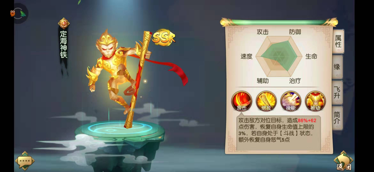 其中大罗天君在上面已经介绍过了,定海神针在硬度上不如大罗天君,不过好处的输出非常猛,在造成伤害的同时,也可以恢复自身一定的生命值,而且在进入斗战状态后,反击的概率将大大提高,可以做到每次受到攻击必定反击,这样输出就大大提高了。