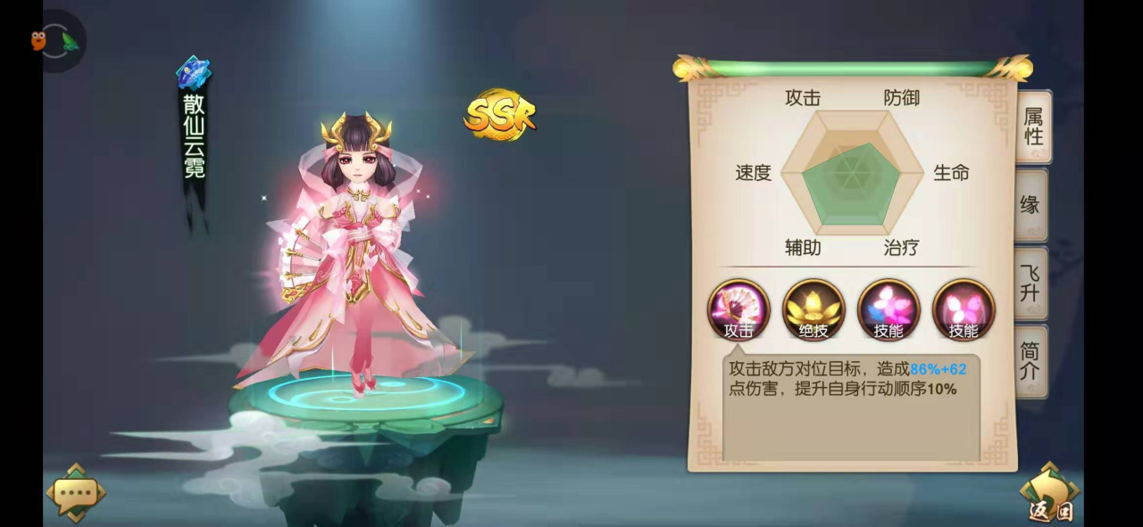 散仙云霓是非常好的治疗英雄,技能不仅可以恢复全体血量,还可以清除身上附带的DEBUFF效果,后面还可以持续恢复少量血量,总体治疗效果非常强。青衣和北斗星君都是强力输出英雄,青衣可以攻击对方防御最高的两个英雄,并且降低对方防御,属于范围伤害,北斗星君则是单体伤害,在队伍中点杀作用很大。
