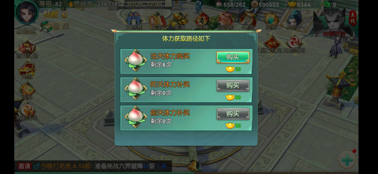 再就是每天可以花费元宝来购买体力,根据特权等级不同,可以购买的次数也不同,如果当天的购买体力次数没有用完,还可以累计到明天。
