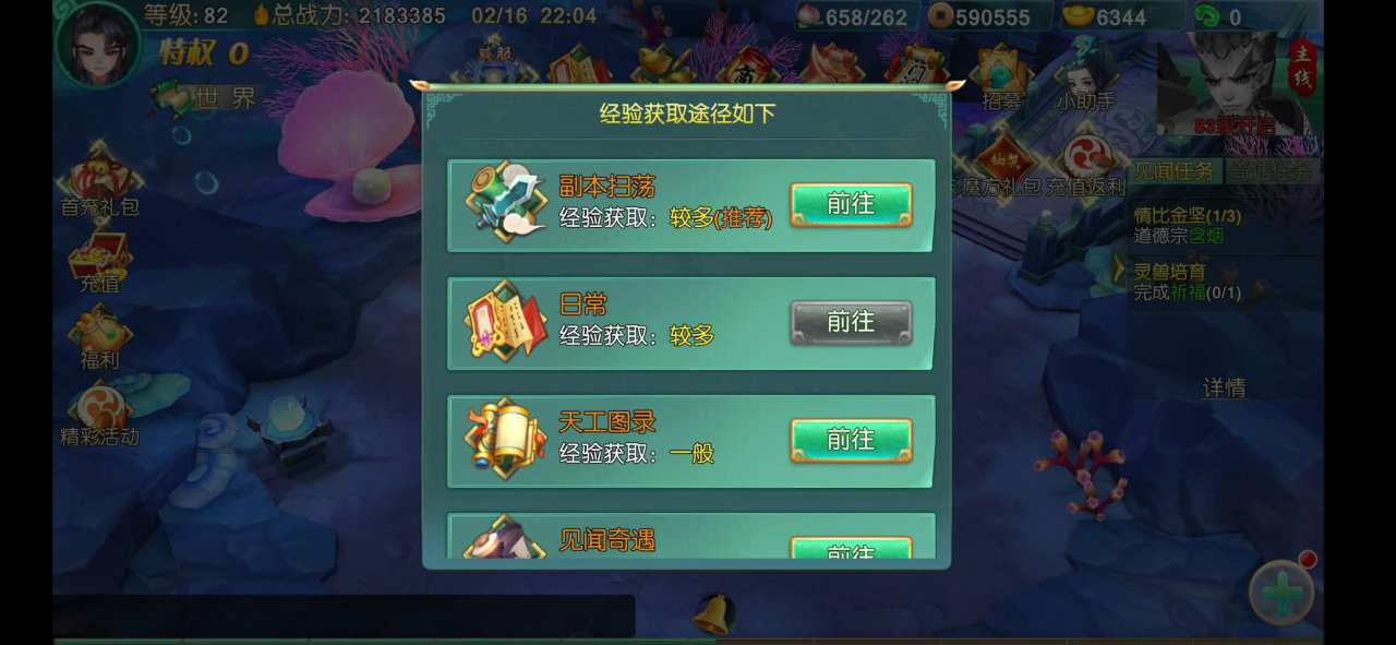 再说说日常任务,日常任务一般都是玩家平时必须参与的游戏活动,例如钓鱼、竞技场、三界绝地、主线副本。挖宝、寻仙等,小编推荐大家每天第一件事就是把日常任务全部做完,这样基本上可以提升一级,等级高了再做其他的任务自然收益就高了。