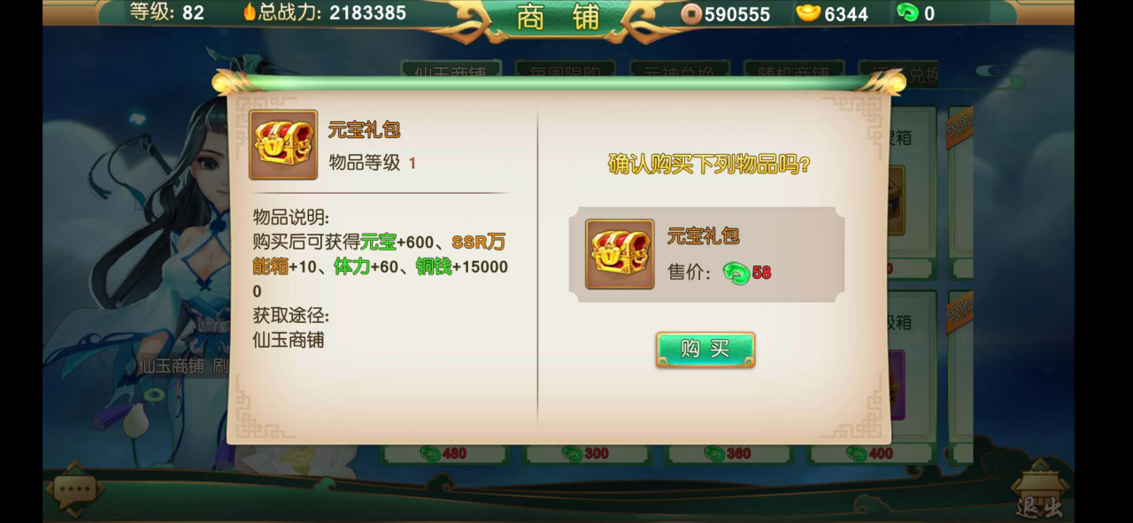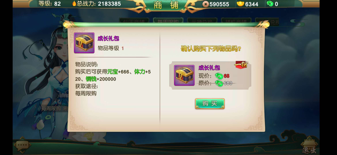 除了花费元宝购买体力外,仙玉商铺中可以购买到元宝礼包和成长礼包,这两个礼包中都可以开出体力值,其中元宝礼包可以开出50点体力,成长礼包中可以开出520点体力,非常可观。