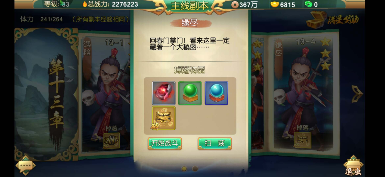而且游戏中设计的是不同章节的副本消耗的体力以及得到的经验都是完全相同的,大家不需要考虑经验获得的问题。