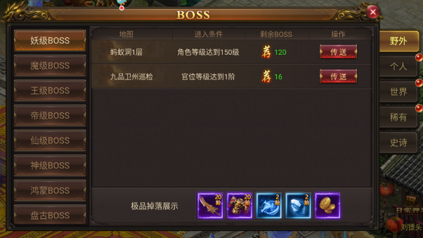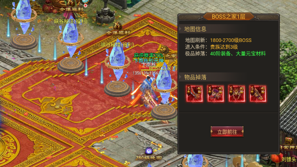 (2)除了武器法杖是六转以外,其他的装内都是七转的,想要快速击杀的话怎么也要有一套六转的装备才行,不然还是有一定难度的。天之雪巨魔君在BOSS之家的第二层的中心,进入后打开地图就能看到BOSS的位置。