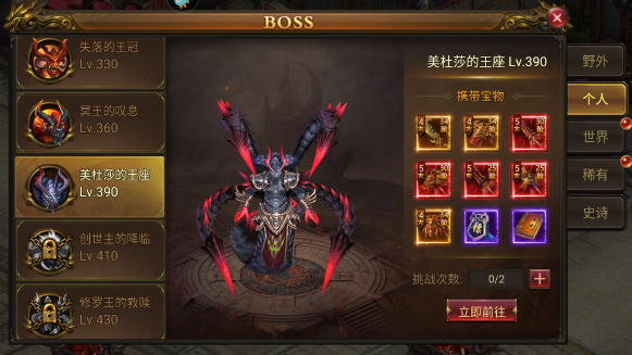 (1)个人BOSS:个人BOSS的难度其实并不算高,而且攻击也没有时间限制,大家带上元神一直麻痹很简单就能过去。小编推荐大家打目前自己等级最高的个人BOSS,基本没有难度。