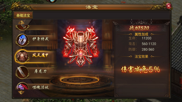 (4)凤天魔甲:VIP8解锁聚宝盆。伤害减免增加5%。