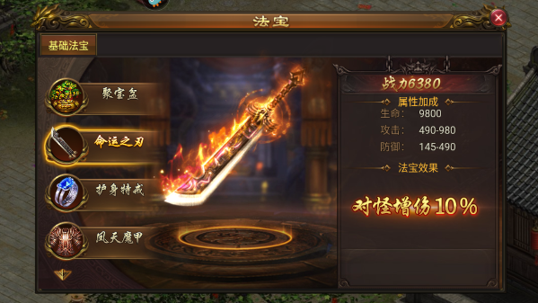 (2)命运之刃:VIP3解锁聚宝盆。对怪物伤害提升10%。