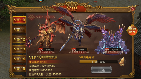 3、积攒到了足够怒气就可以挑战VIP专属BOSS了,击杀之后可以得到VIP经验值,后期基本都是靠着这个来提升。