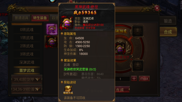 3、黑神武魂绝世:两个至尊黑神武魂合成一个绝世的。