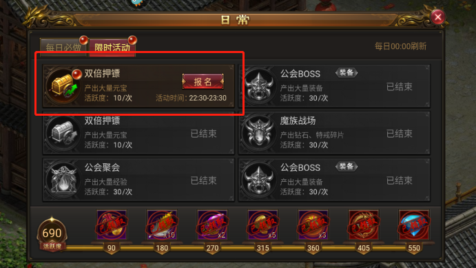 2、押镖任务:押镖是个每日任务,完成后可以获得大量元宝,推荐大家在双倍奖励活动的时候再去押镖。