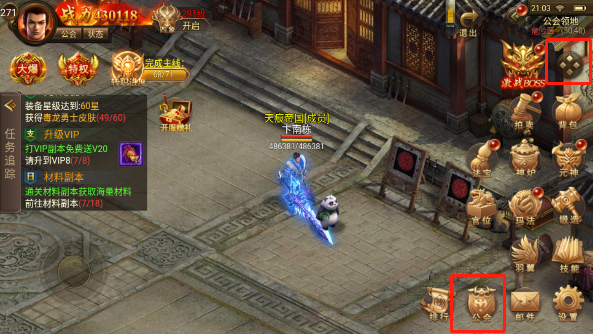 (3)如何捐赠:进入到游戏中的主页面位置,点击屏幕右边展开“状态栏”,点击在最下边位置的公会进入到公会系统。在公会信息界面的最下方有个“公会捐赠