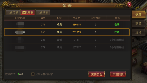 (4)如何快速升级:想要快速升级公会,靠自己的力量肯定是不行的,大家应该招募更多的公会成员。公会初期推荐大家直接无条件接受进入公会,后期等级起来了再去清理不上线的玩家。其次就是元宝的获取非常简单,不要觉得浪费。