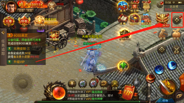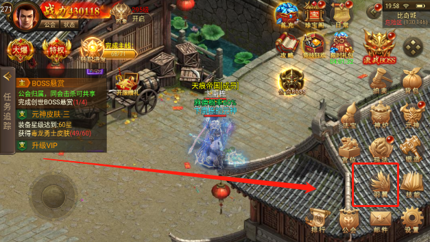 2、进入到游戏中的主页面位置,点击右侧展开菜单栏按钮。在下边的位置就能够看到“羽翼”功能了,点击进入就能开始培养翅膀。