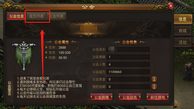 (3)每天记得捐元宝,捐钻石可以升级公会。公会升级以后增加的属性会更多。