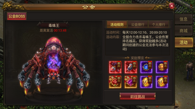 (2)可以通过打公会BOSS可爆装备,积极打BOSS可以让自己变强。