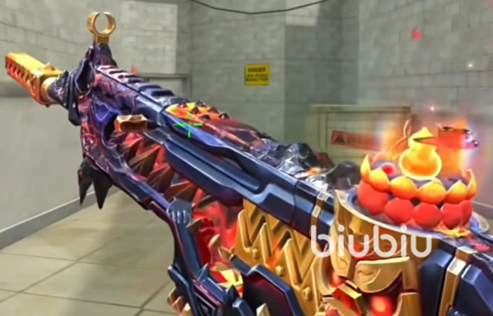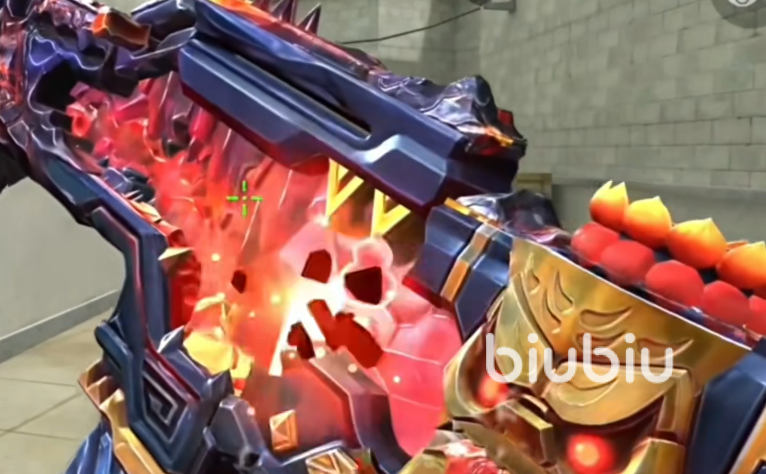 这款游戏的特效做的非常好,枪的后半部分有钢牙大王张开大嘴的特效,同时前面的宝石部分可以看到有一个小葫芦。枪的上方还有着在发光的金色的小葫芦。枪在换弹的时候也有特效。