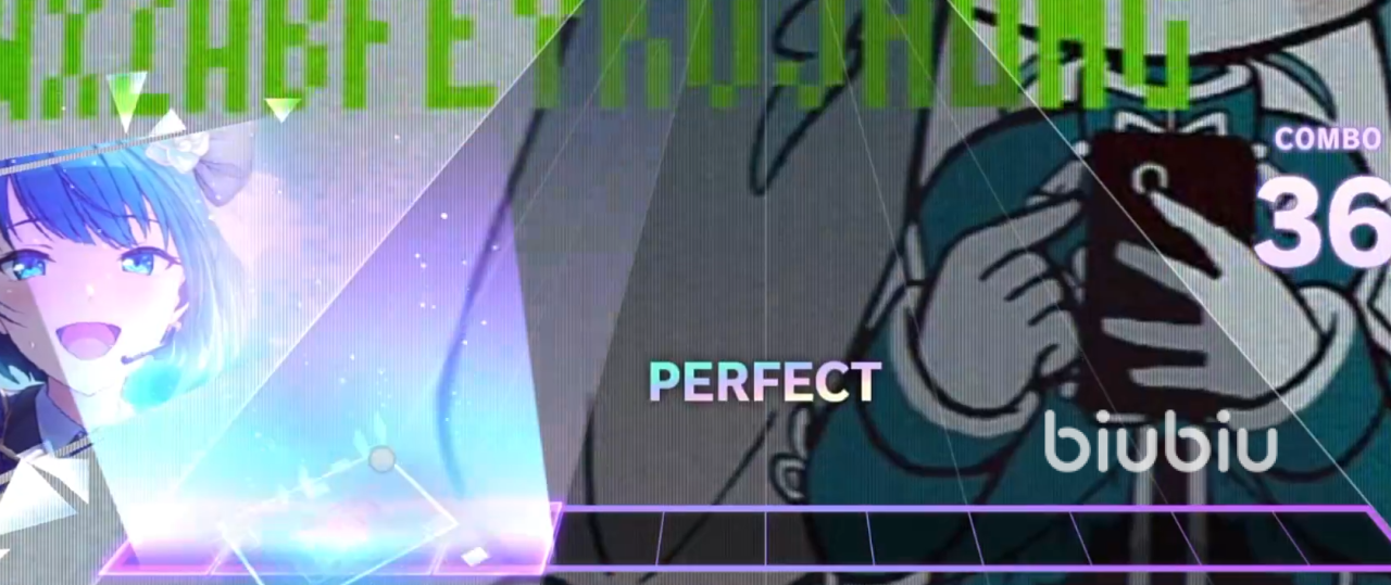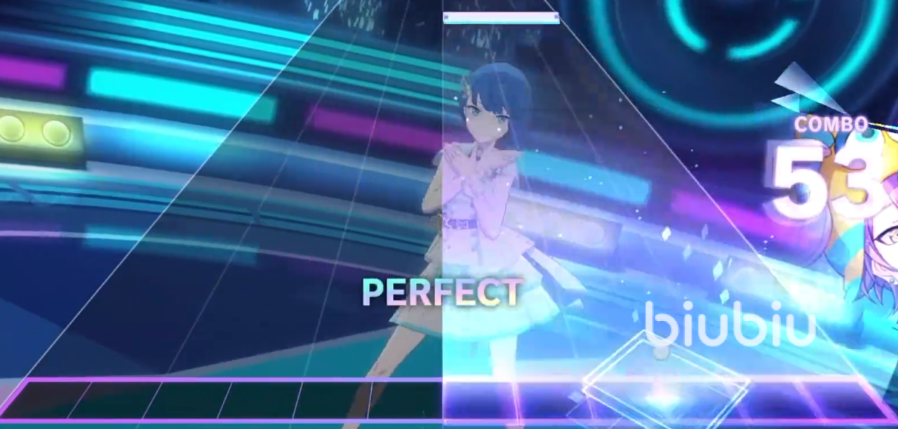 然后是对滑flick的判定,这个游戏只需要完成“按住+滑动”两个动作,并不要求松手。而且,这两个动作甚至可以由不同的手指完成。例如,一只手按住一个音轨,另一只手滑向Flick的位置,这样依然可以获得完美Perfect判定。