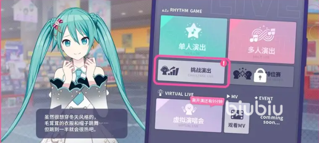 完成一天一次的挑战演出可以获得丰富的奖励,如果想要在挑战表演中获得高分,可以选择播放时间较短的歌曲,建议各位结合自身水平,选择对自己来说更加容易的full combo的难度。
