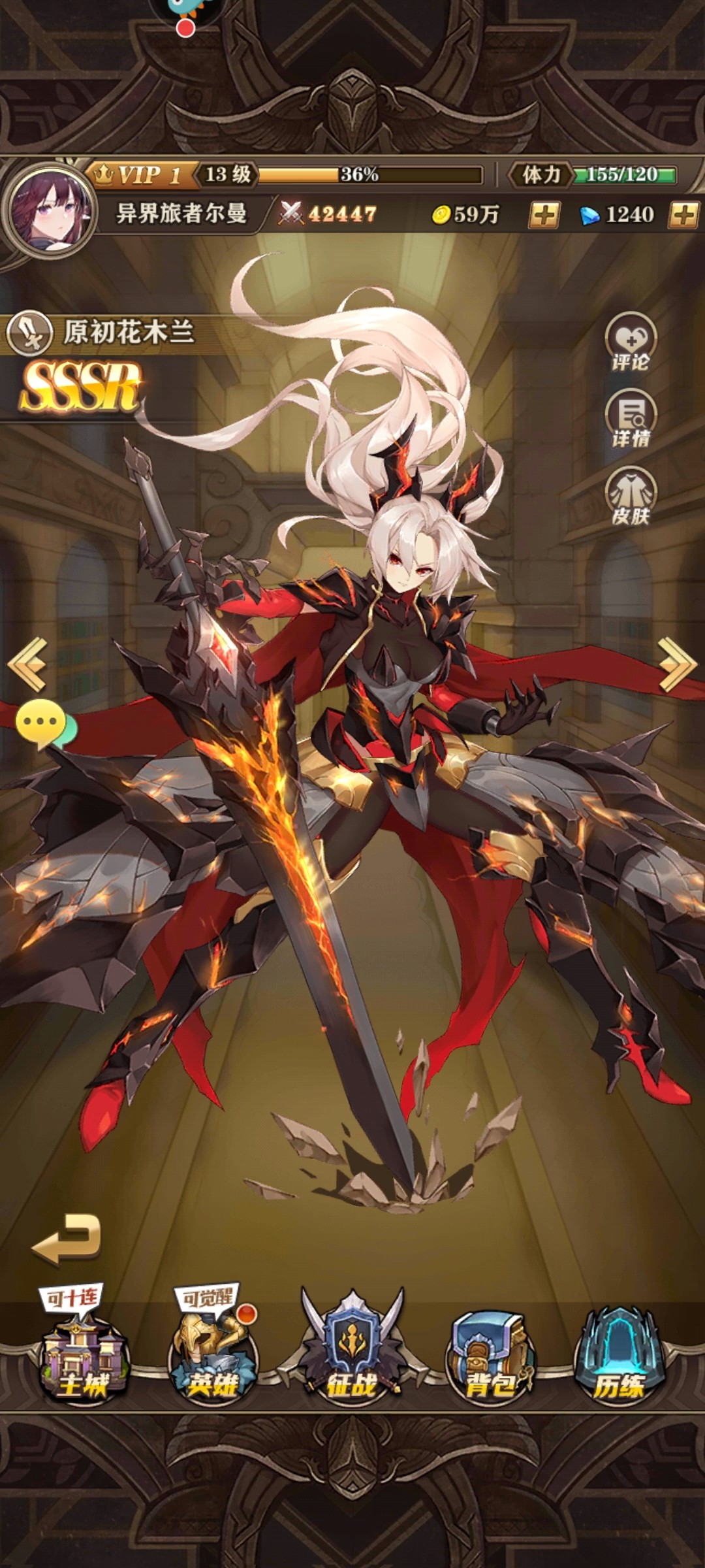 首先花木兰在文史当中是一名女性战士形象,当然在游戏当中花木兰也是作为一名战士驰骋在沙场之上。但是在美工的画笔之下却是英姿飒爽的样子,手持大剑、身着披风眼中带着一抹坚毅和干练。作为一名sssr级英雄,花木兰一出现在战场上就是输出的核心C位。