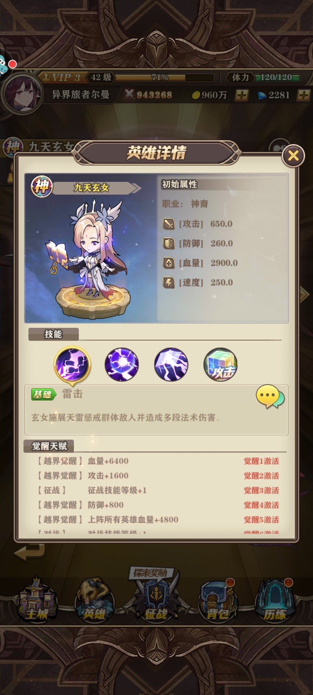 在游戏当中作为12名sssr级别的之首的龙女一直受到广大玩家的好评,很多玩家都想拥有一张龙女卡充实自己的英雄库。龙女的职业是神裔,字面翻译就是神的后裔。龙女的初始四维属性比普通的ssr卡英雄属性值要高十倍左右,作为稀有属性卡龙女的攻击伤害作为多段持续性伤害,与控制系英雄搭配产生的游戏效果可以碾压全场。