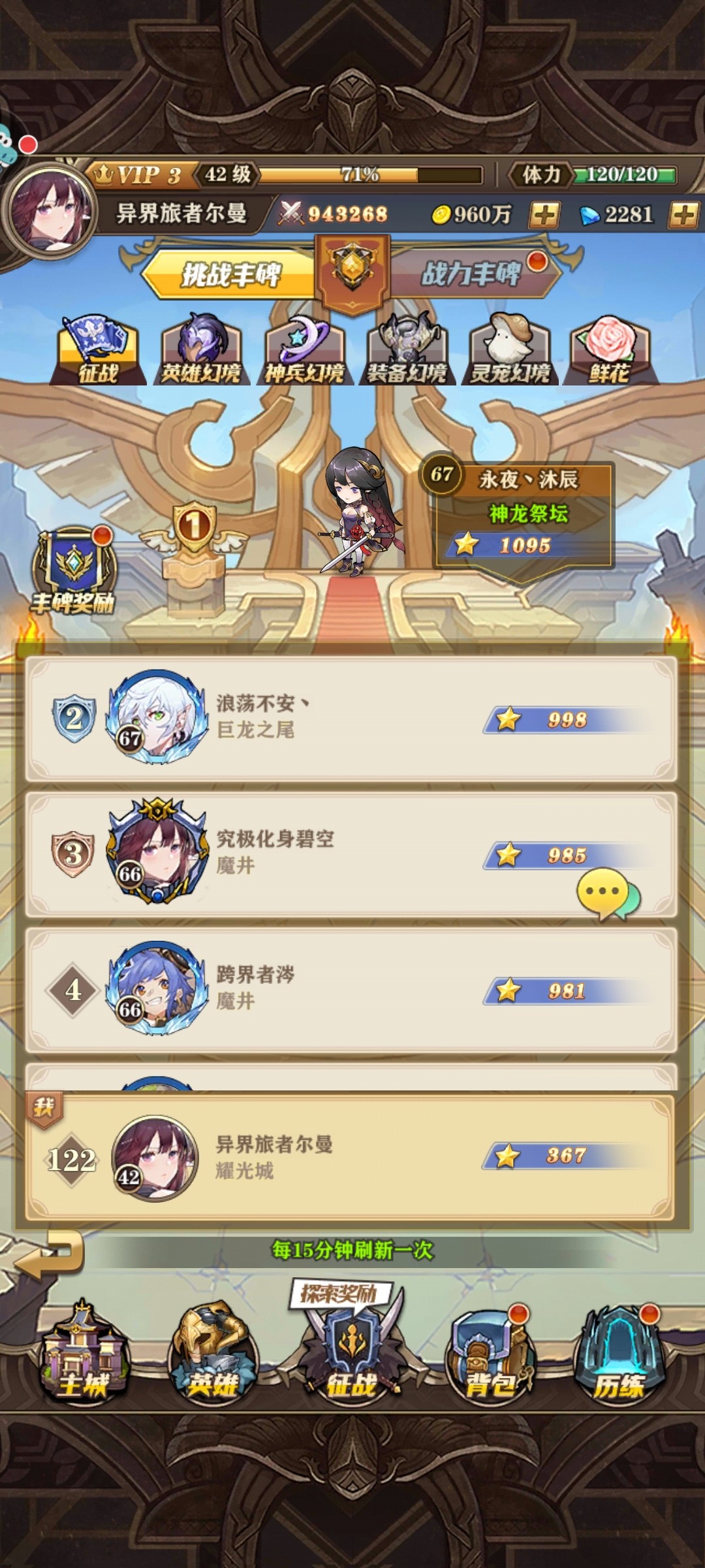同时,玩家也可以在休憩庭院当中与龙女进行猜拳活动,所获取的徽章以及物品全部赠与龙女,用于提升龙女的基础四维属性值,这样就能够从基础上加强龙女的伤害和战斗力。当然如果玩家收获了任意一张sssr级英雄,建议玩家将此英雄设定为核心卡,阵容设定以及装备物资都倾斜到这个英雄身上,这样就可以使队伍冲级、提升整体水准更有目的。