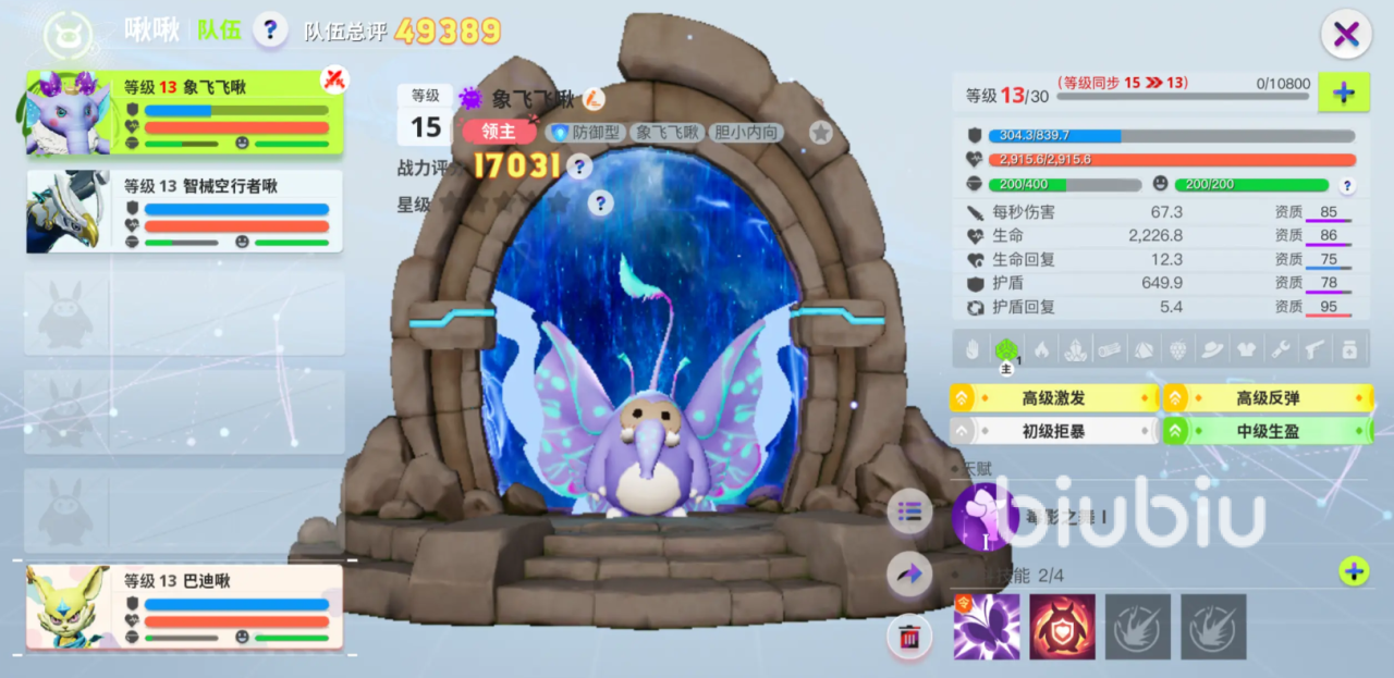 如果自己一个人探索的话,那就可以考虑1防御啾+1辅助啾(如象飞飞+黑石啾),提高整体队伍的生存能力。要是组队挑战的话,推荐2攻击啾+1防御啾+1辅助啾(如科莫多龙啾+彭罗斯球啾),增强团队输出和续航,所以还是要用好正确的队伍才行。