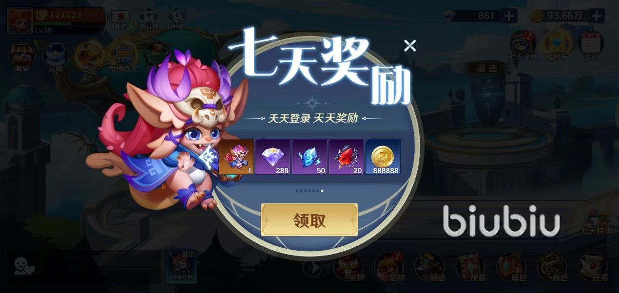 不过在这之前最主要的还是其折扣方面的福利,官方在对待新人玩家而言所提提供的福利也是一个巨大的看点,七天登录福利第一天的橙级宠物在新手期间用处可谓是非常大,之后的金币钻石抽奖等等之类福利也是足以满足玩家目前的需求的。