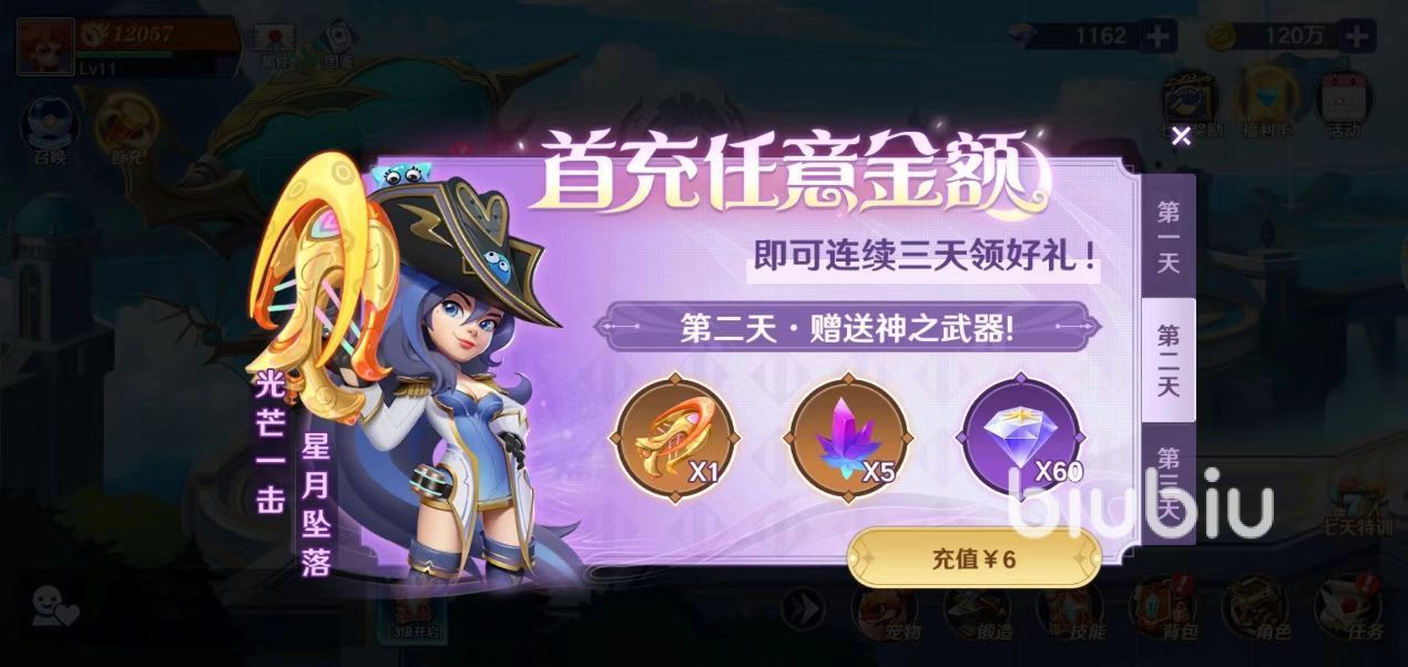 当然任何游戏都存在首充,弹弹奇妙冒险也不例外。连续三天充值六元就可以领取到绝版服饰以及传说宠物、翅膀等等,这里若是对这些有需求的玩家可以考虑小充一下,也能使得今后的冒险更加容易一些。