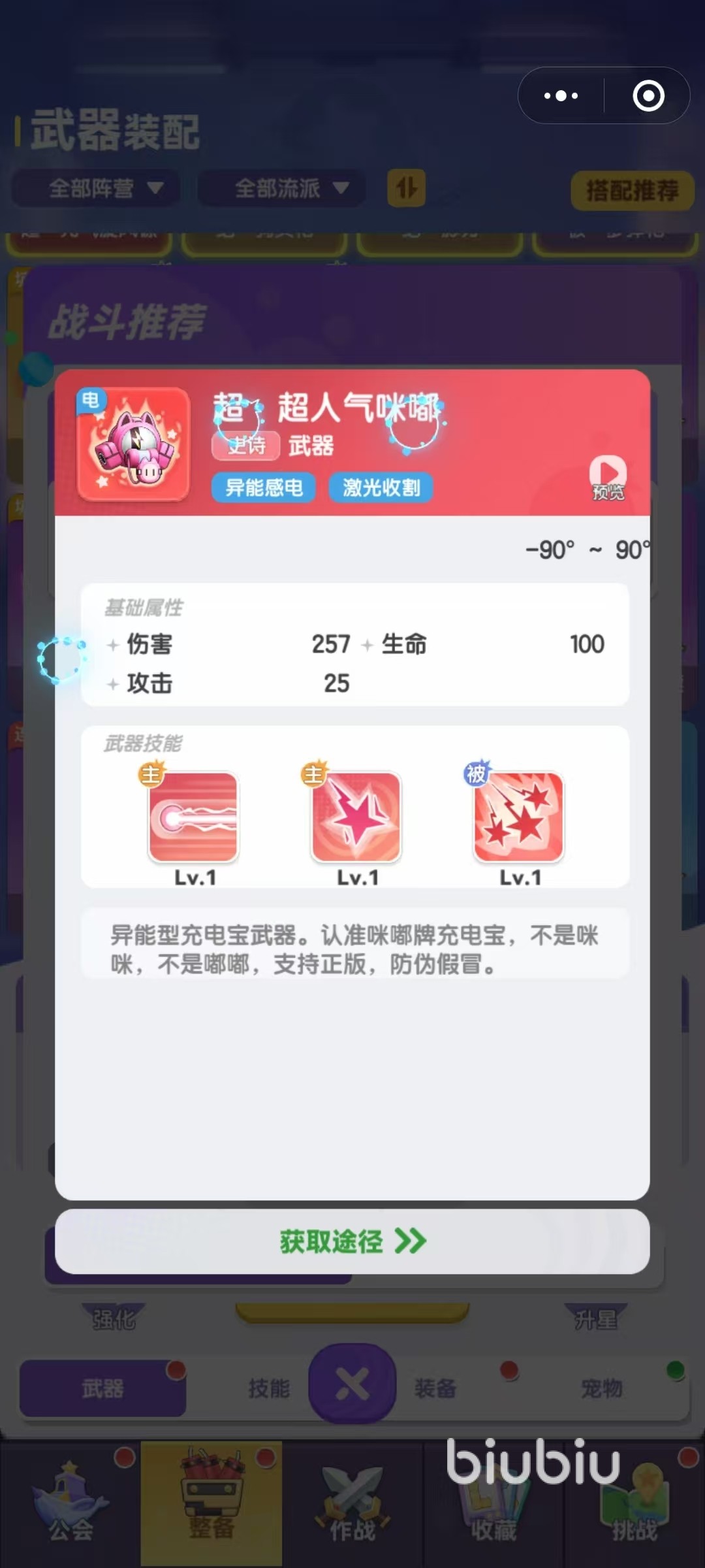 闪电侠咪嘟则更适合作为起手武器使用,感电子弹命中后会分裂出追踪弹,自动锁定附近目标攻击,不仅可以清理场面,还能为敌人附加感电状态,是整套连锁爆发的起点。而超人气咪嘟则更偏向收尾使用,在敌方感电状态叠加完成、敌人站位集中时释放激光,可打出极高倍率的爆发伤害。激光命中后附加雷暴效果,并根据命中的敌人数量追加额外伤害,是整个感电体系中最具爆发力的一环。