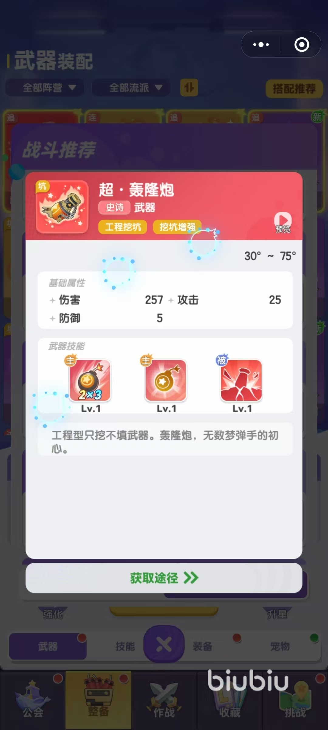 最后是轰隆炮,它作为挖坑流派中的控制核心,提供的是稳定的多段打击与控制力。其发射的6颗子弹,虽然伤害数值略低,但每次命中敌方目标时有20%的概率施加“禁锢”状态,持续1回合。禁锢可以阻止敌人移动甚至释放特定技能,在实战中无论是追击残血、阻止敌方输出还是打断关键连段,作用都极其明显。如果前期通过星红武士已经堆出核爆效果,再配合轰隆炮的禁锢和多发覆盖,极容易形成一次稳定的控场连锁,压缩敌方走位空间,从而限制其战术发挥。