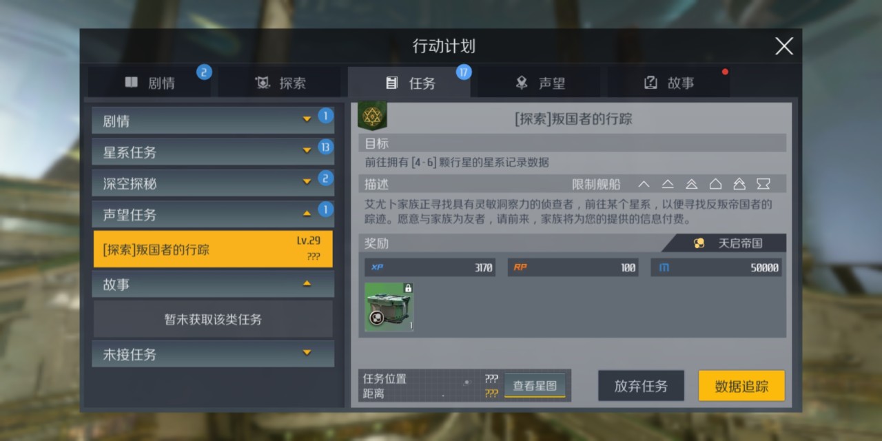 带有探索性质的记录数据不同于其他声望任务,玩家只需要前往拥有4颗-6颗行星的星系就能轻松完成。而想要查看星系的具体情况需要打开星图,点击星系详情选择星体列表即可查看行星数量,注意空间站、中央恒星是不包括在行星中的哦!