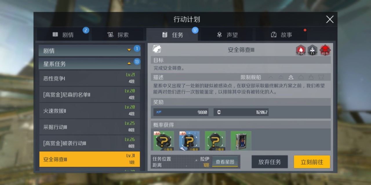 通过完成各种任务来降低犯罪等级、消除红名有一个缺点:其他玩家可随时入侵至任务场景。这就需要依靠其他军团伙伴的协助,以保障处于红名时顺利完成任务,但注意一定要提前把基地搬迁到军团所在星系哦!
